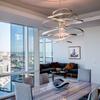 Dramatic light fixtures, stunning harbor views and a collage of Ray Lewis photos highlight this 3,100-square-foot condo in Harbor East.